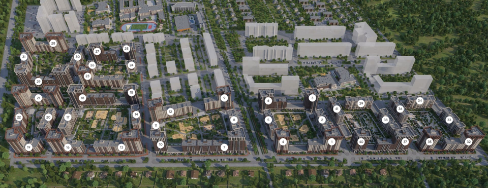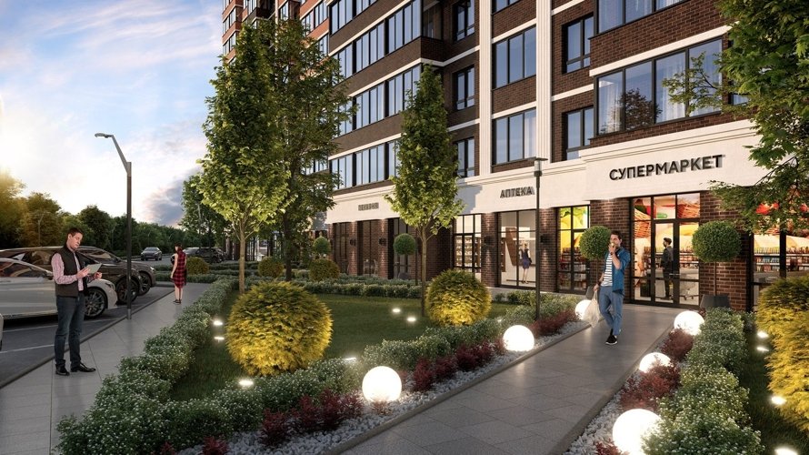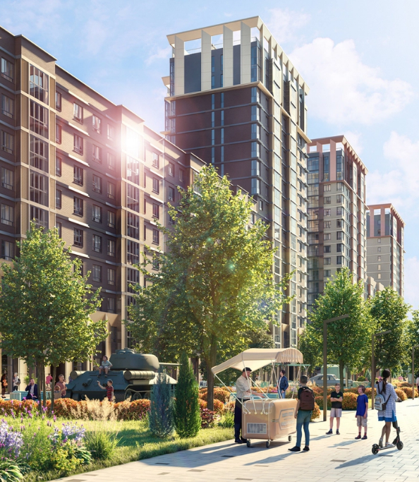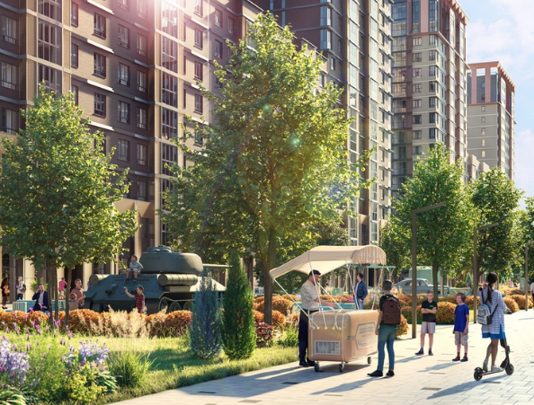 В районе предусмотрено масштабное благоустройство с точками притяжения в виде арт-объектов, собственный прогулочный бульвар, дворы без машин и развитая инфраструктура для жизни, отдыха и спорта.