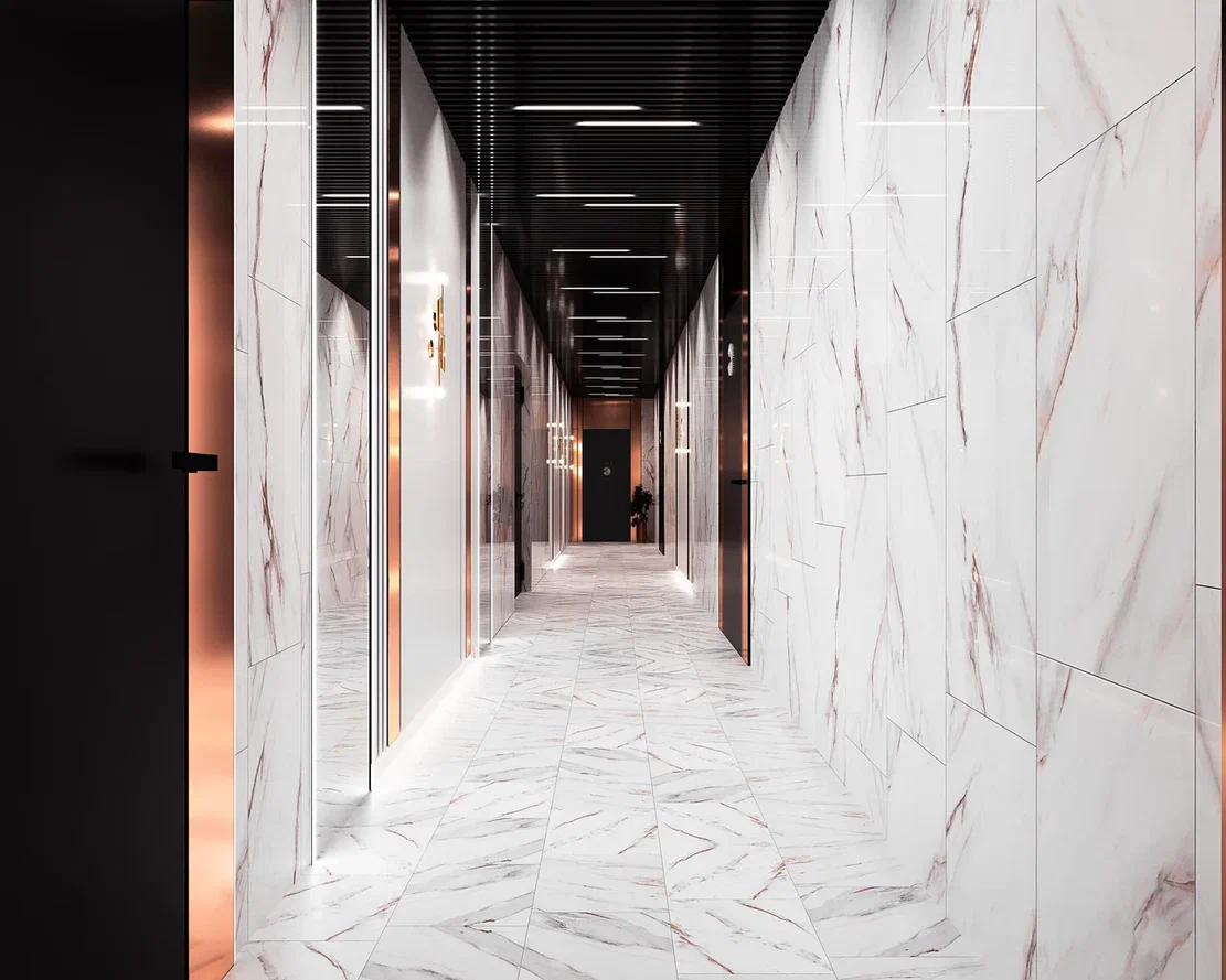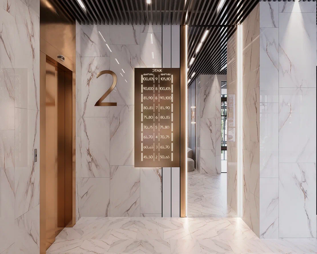 Просторные и светлые парадные встречают жильцов и гостей безупречным сочетанием роскоши и минимализма. Мраморные полы отражают мягкий свет, льющийся сквозь панорамные окна. Бесшумные скоростные лифты мгновенно доставят на нужный этаж. Сенсорные двери – это современный акцент, подчеркивающий технологичность и комфорт дома.
