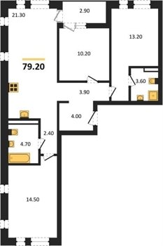 Французские окна высотой от 1,8 до 3,2 метра, потолки 4,2 метра.