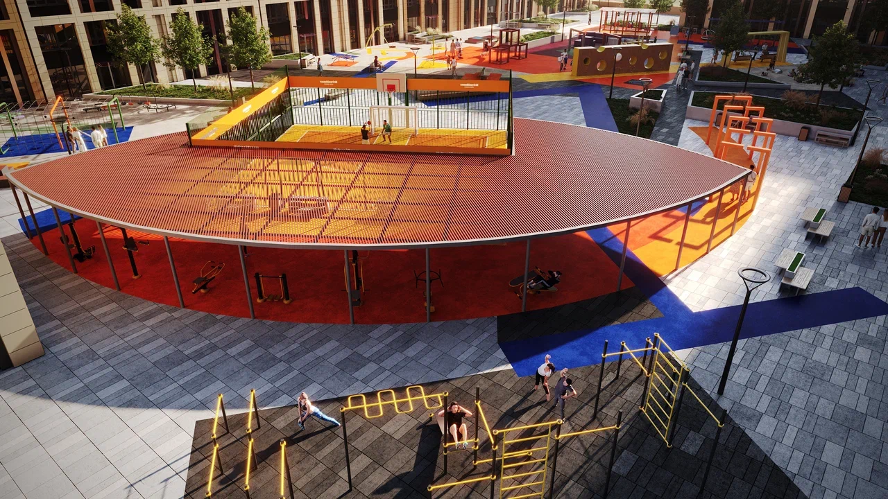 В каждом дворе есть баскетбольная площадка и места для занятий на тренажерах. На территории комплекса есть дорожки для велосипед и бега.