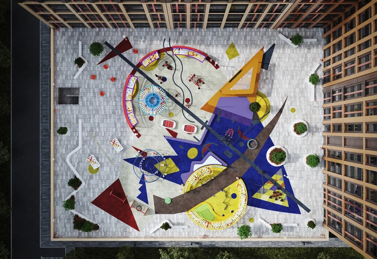 Перформанс-дворы в виде картин художников: Малевича, Кандинского и других, аллея авангардистов, Зелёный променад Рязановой и сквер Татлина откроют перед вами новые грани искусства в гармонии с природой.