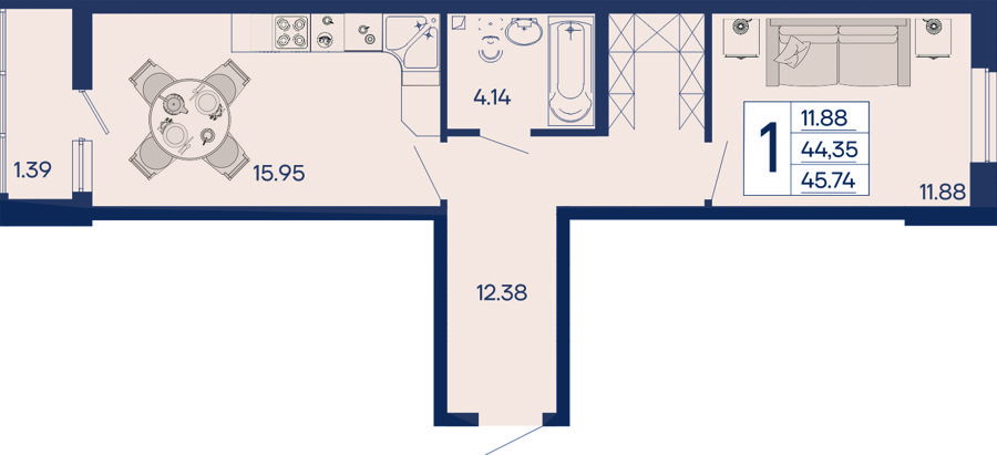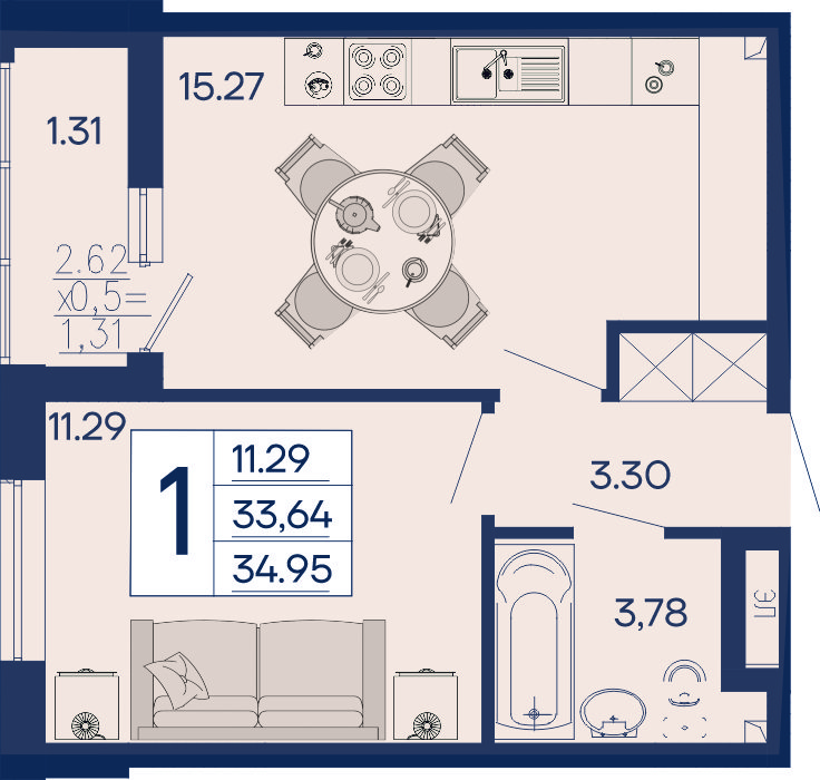 Площадь от 34.95 м2