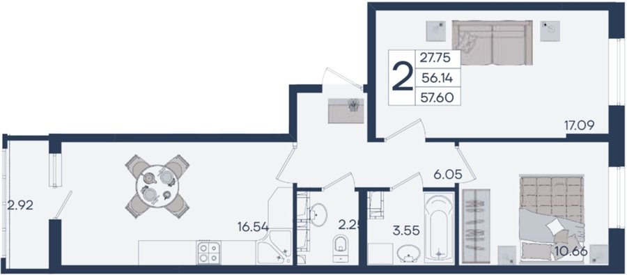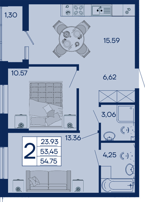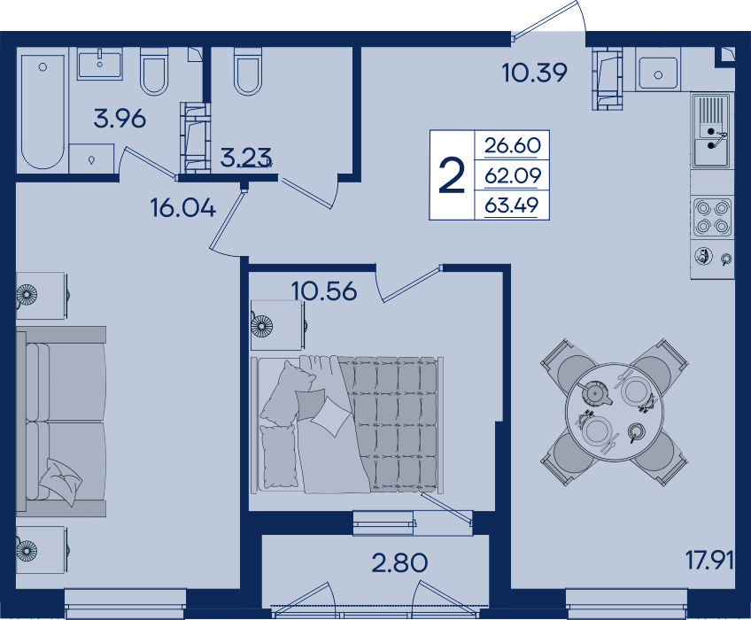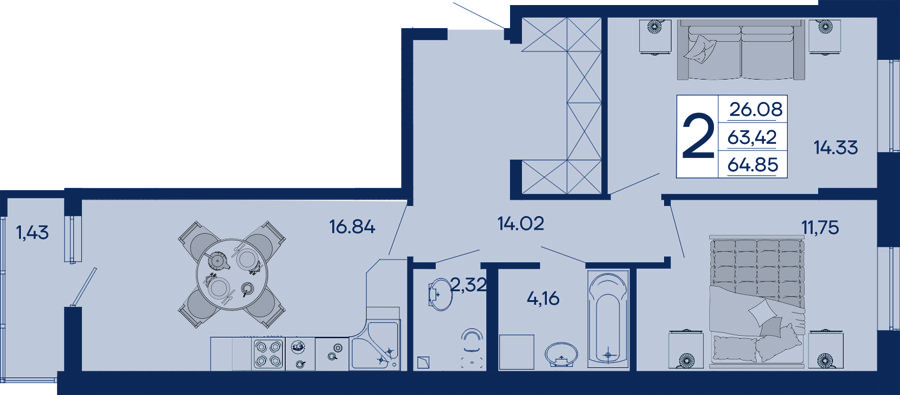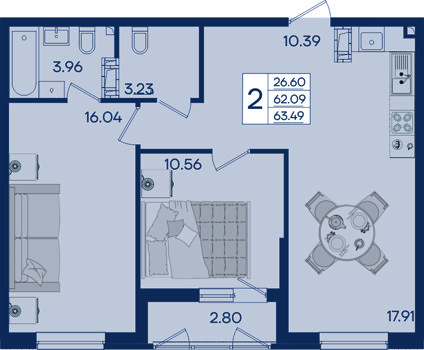 2 ком. от 48,8м² до 64,85м²