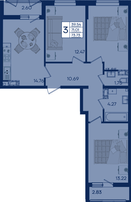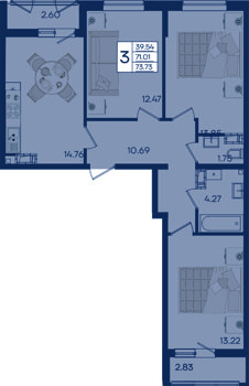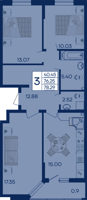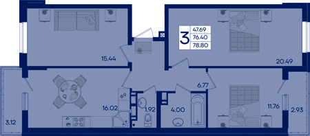 3 ком. от 77,46м² до 78,80м²