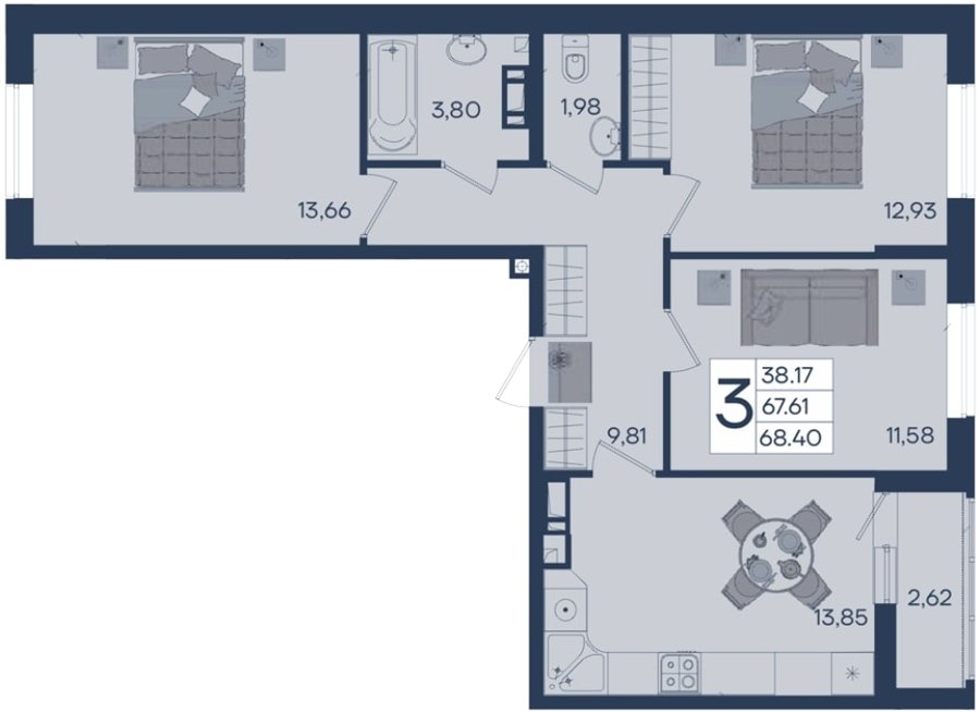 Площадь от 68.40 м2