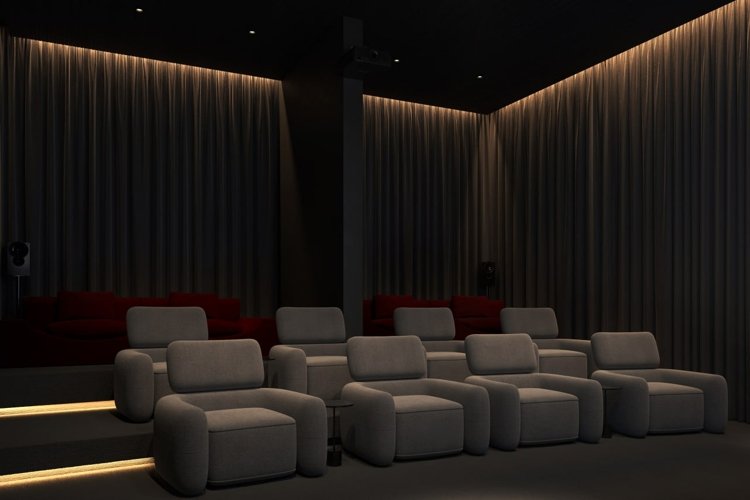 А еще атмосферный кинотеатр для семейных просмотров для резидентов клуба, прямо у вас в доме. Приходите на киносеанс прямо с тапочках!