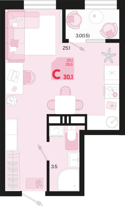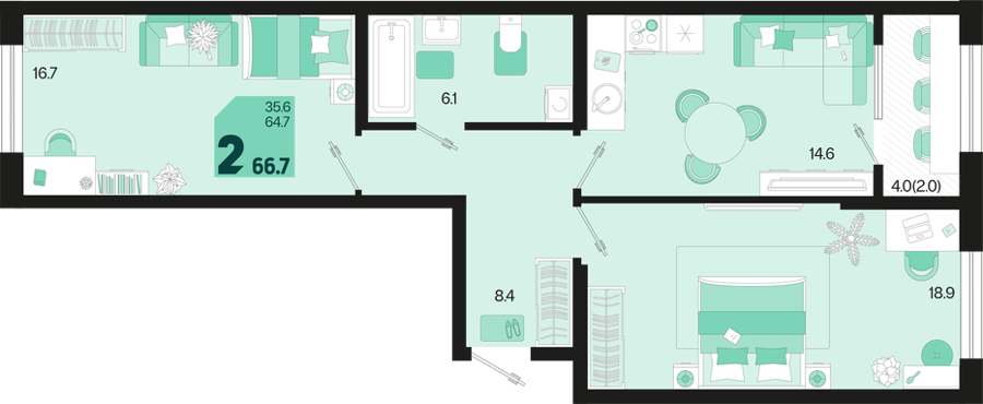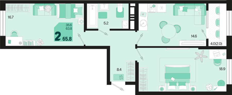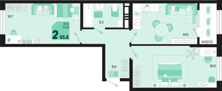 Площадь от 35.4 м2