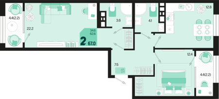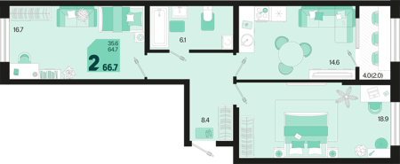 2 ком. от 42,7м² до 70,2м²