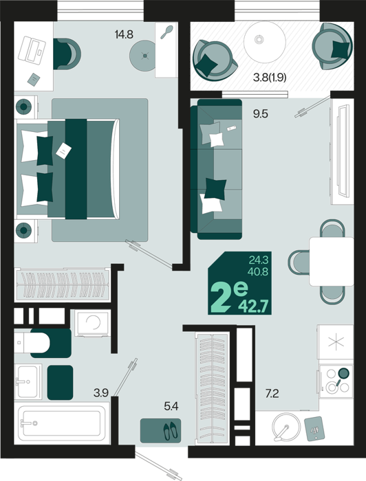 Площадь от 42.7 м2