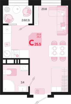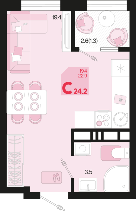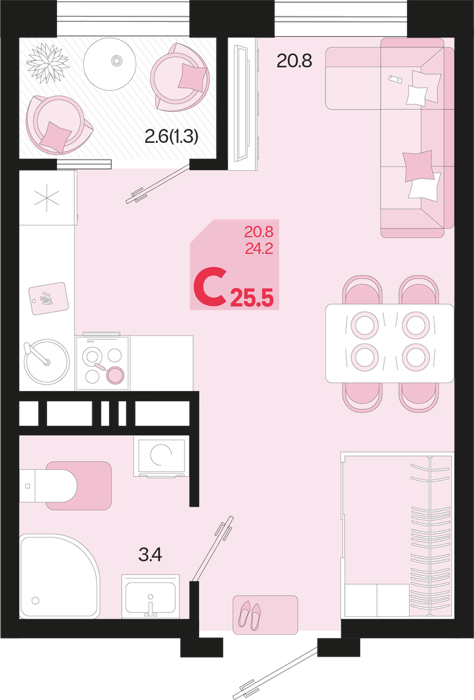 Площадь от 24 м2